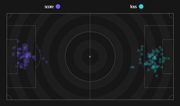 ✔ Cự ly ghi bàn trung bình : 13,4%