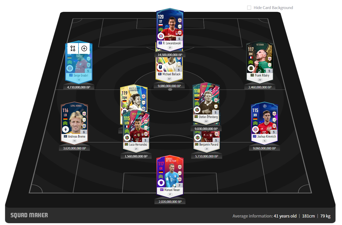 Với dàn hảo thủ kết hợp giữa những cái tên đương đại và quá khứ, đây có thể coi là một trong những đội hình mạnh nhất của Bayern Munich trong Fo4 hiện tại. Tất nhiên vị trí của Matthaus vẫn làm tôi hơi lấn cấn một chút, vì đó có thể thay bằng Goretzka. Tiền vệ này vừa to cao và có vẻ hợp hơn với đa phần người chơi Việt Nam.