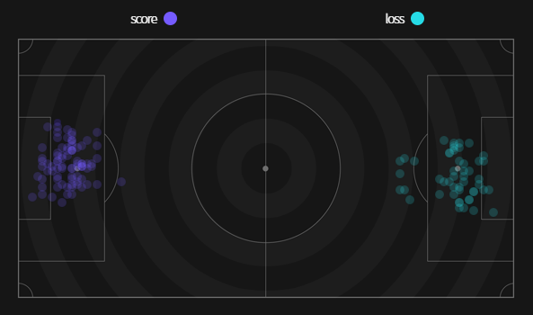 ✔ Cự ly ghi bàn trung bình : 12,6m