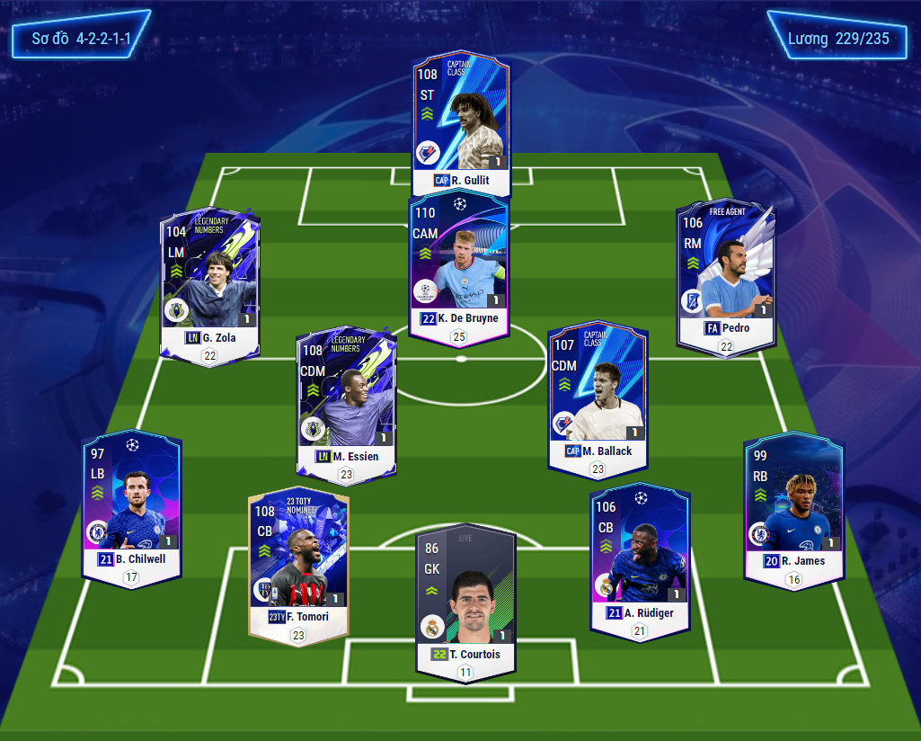 Ở hai cánh là hai cầu thủ có khả năng đi bóng, tạt bóng đều rất ổn. Đá Gullit bạn nên tích cực spam tạt bóng để tận dụng khá năng chơi đầu thượng thừa như hack game của Gullit nhé.