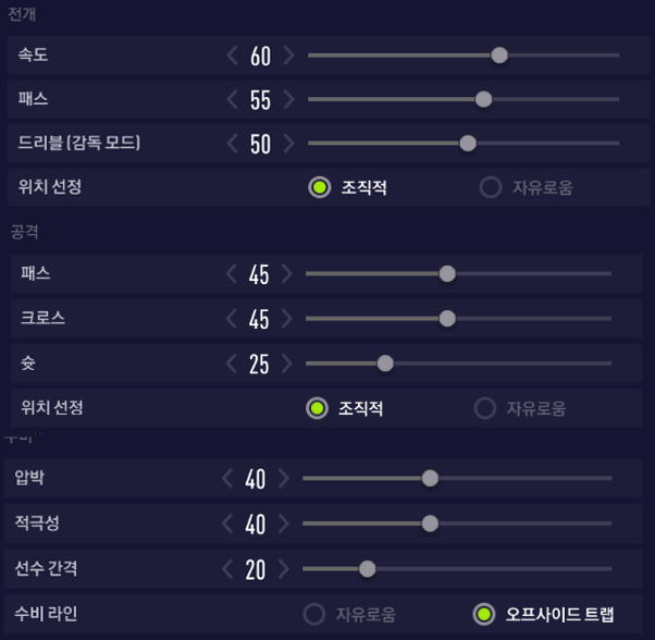 Cự ly phòng ngự tương đối hẹp nhằm đảm bảo số lượng cầu thủ bao bọc vòng cầm đống nhất và hạn chế các kẽ hở cho đối phương tận dụng. HLV này sẽ sử dụng bẫy việt vị, một lựa chọn khá lạ và có lẽ cũng ít người dùng.. Vì vậy bạn hãy thử cân nhắc kỹ thiết lập này nhé.