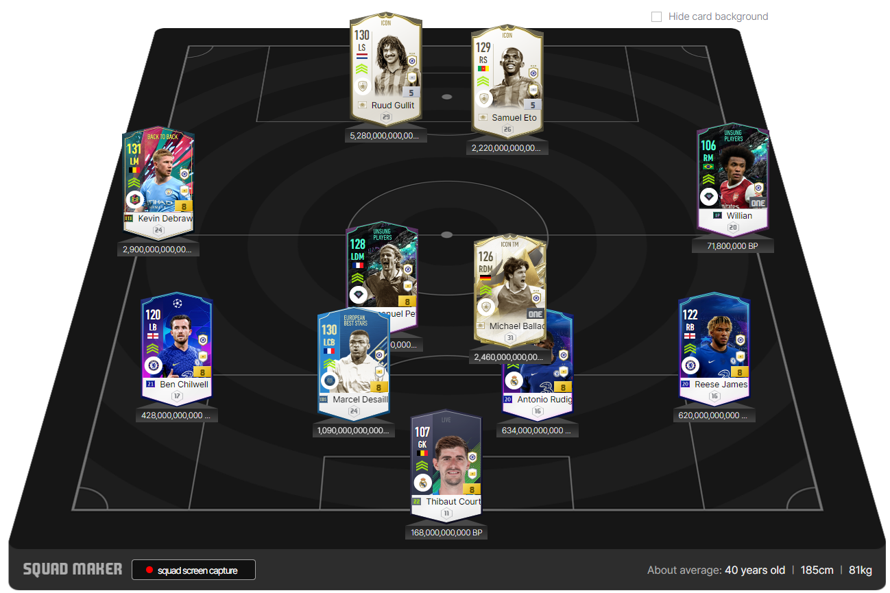 Chelsea với 4222 ở phiên bản gameplay 9.3 có thể nói là một sơ đồ mang tính phổ thông nhất do nó phát huy được những gì mạnh nhất của CLB này. Họ có một dàn cầu thủ CDM thừa sức mạnh và kỹ năng chuyền bóng. Còn tiền đạo có lẽ đó là thứ mà team color Chelsea chưa bao giờ thiếu cả.