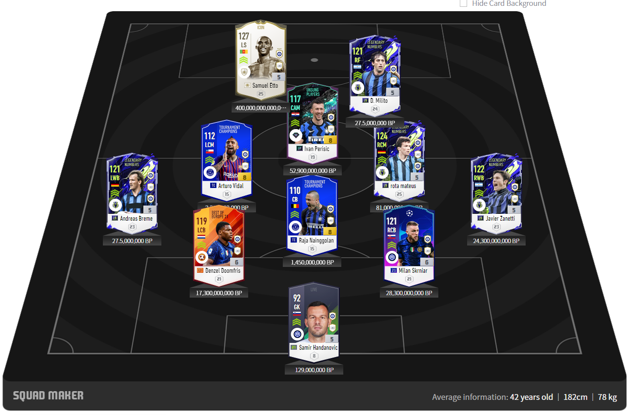 Xây dựng một team Inter Milan cũng khá rẻ do cầu thủ của CLB này ít người săn đón hơn, vì vậy giá thành vì thế cũng dễ chịu hơn nhiều.