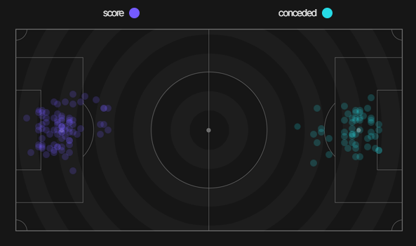✔ Cự ly ghi bàn trung bình 14,9m
