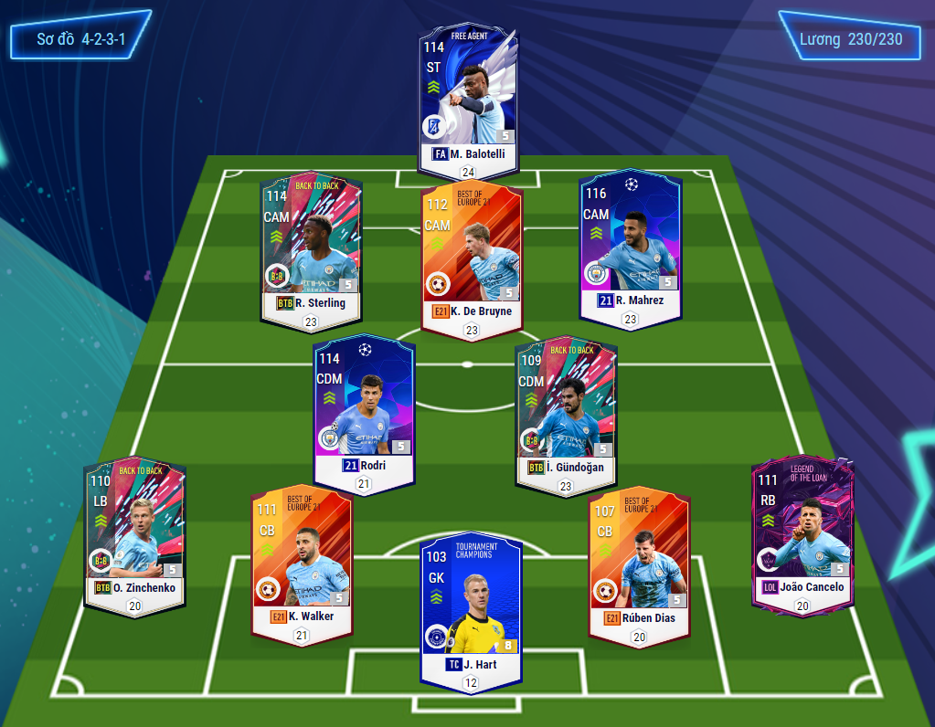 Sự dụng team Man City đang là xu hướng ngày càng nhiều hiện nay khi mà chất lượng các cầu thủ của họ ngày càng được nâng cấp lên nhiều hơn. Ít nhất trong đội hình Man city lúc này cũng có một cầu thủ quốc dân là De Bruyne. Người có thể làm hạt nhân trong lối chơi và cũng có thể đóng vai trò một cây săn bàn tuyệt vời.