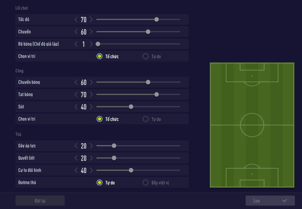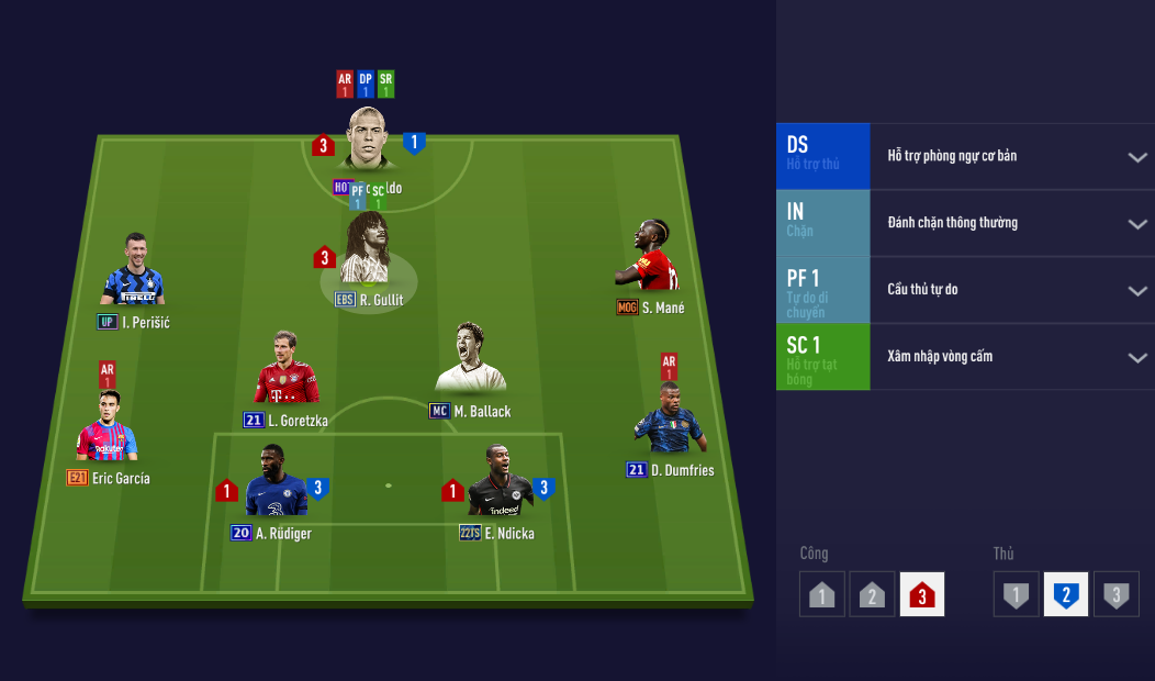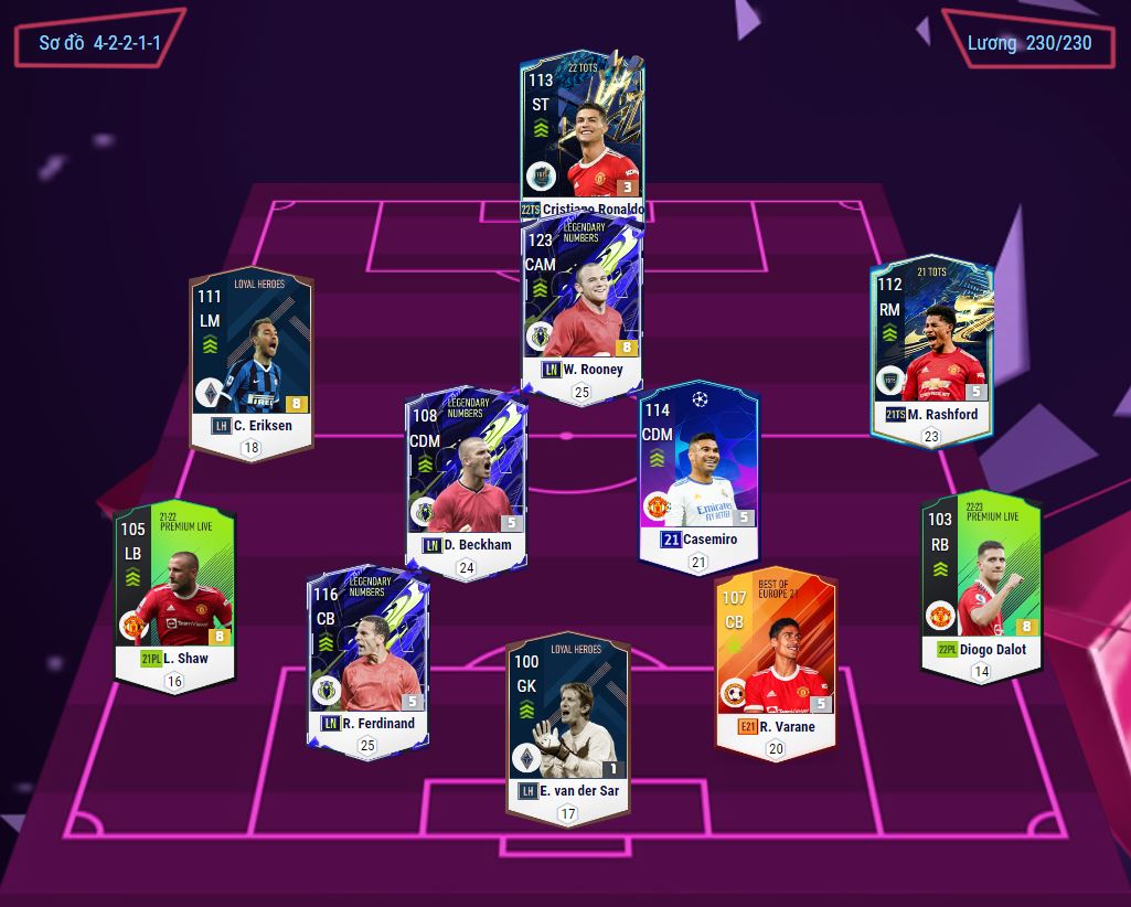 Thiết lập đơn minh họa cho đội hình của team Man United nói trên với gameplay hiện tại