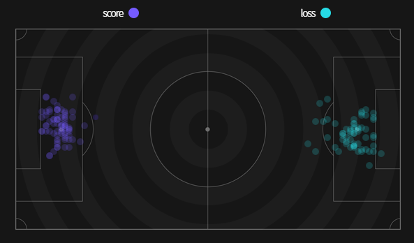 ✔ Cự ly ghi bàn hiệu quả 13,9m