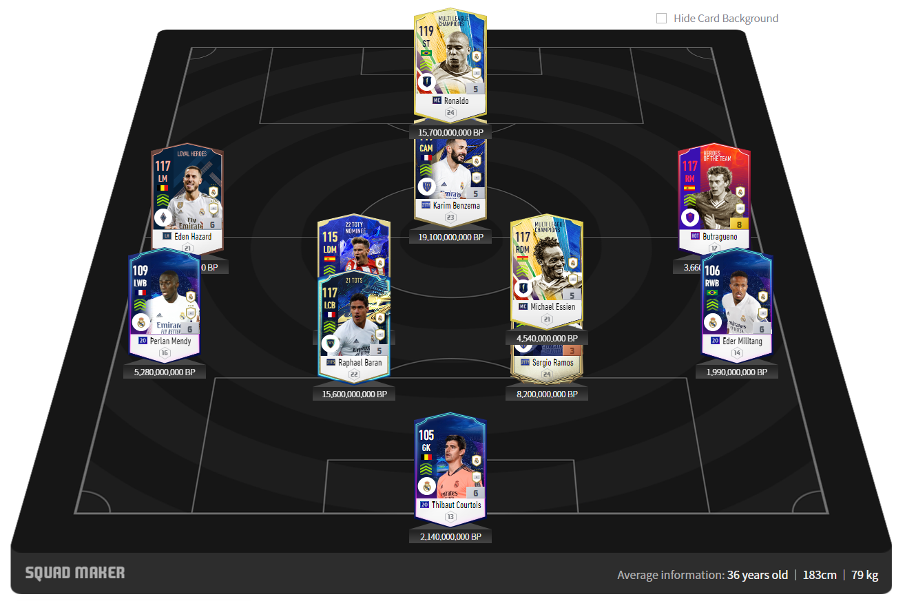 Team Real Madrid có rất nhiều cách xây dựng khi họ sở hữu dàn cầu thủ cực chất lượng trong đội hình, ở phần 1 chúng tôi đã gửi tới cho các bạn một team Real với sơ đồ 42211 với những cá nhân khá quen thuộc. Vậy còn cách xây dựng khác không ? tất nhiên là có chứ và đây là một ví dụ