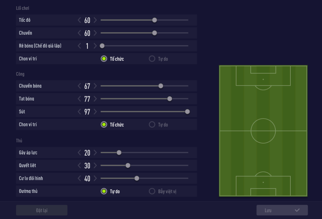 Tuyến tiền vệ là những cầu thủ công giỏi hơn thủ, vì vậy hãy phát huy thế mạnh nhất của họ. Đừng gò bó trong việc phòng ngự, vì dù sao sao với việc tập trung đông cầu thủ ở tuyến giữa như vậy thì đối phương sẽ rất khó khăn trong việc xuyên phá trực diện từ trung lộ.