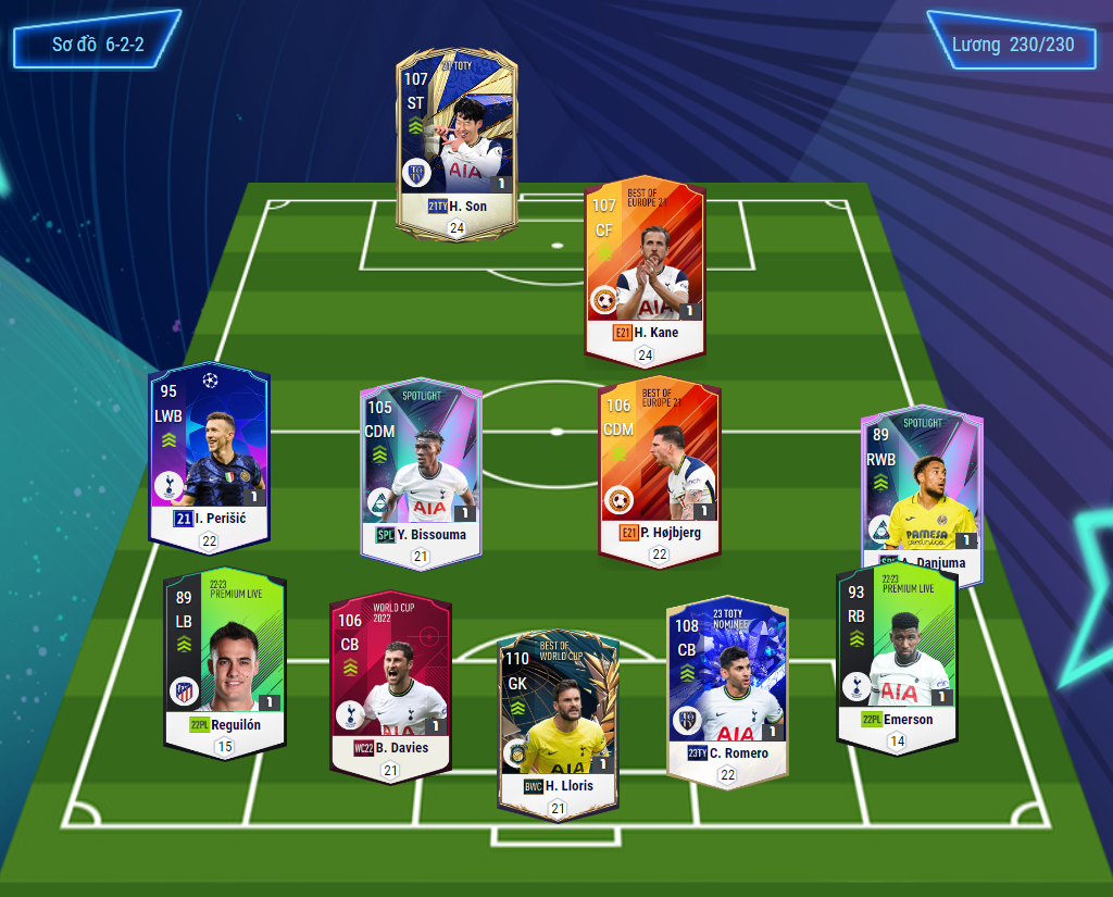 Nhìn thoáng qua bạn sẽ thấy rằng chiến thuật này dùng tới 8 cầu thủ ở phần sân nhà và chỉ cắm có 2 tiền đạo ở phía trên. Tuy nhiên chiến thuật này lại khá phù hợp với team TOT nói riêng và những đội có hàng thủ yếu nói chung vì nó tận dụng được tốc độ của những cầu thủ như Kane, Son hay đôi cánh có khả năng tạt bóng sớm như Perisic và Danjuma.