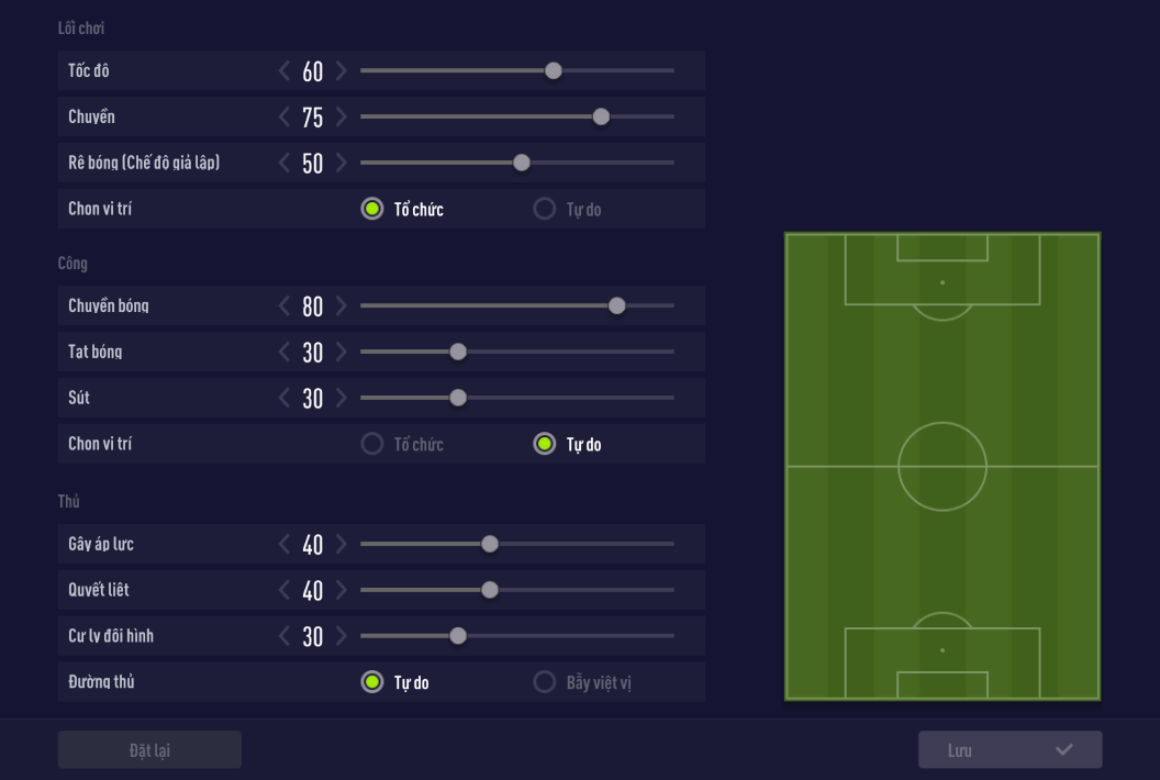 Các vị trí tiền vệ phòng ngự được thiết lập phòng ngự bị động, yêu cầu người chơi cần có nhãn quan phòng ngự tốt, hạn chế bị hút theo bóng của cầu thủ.