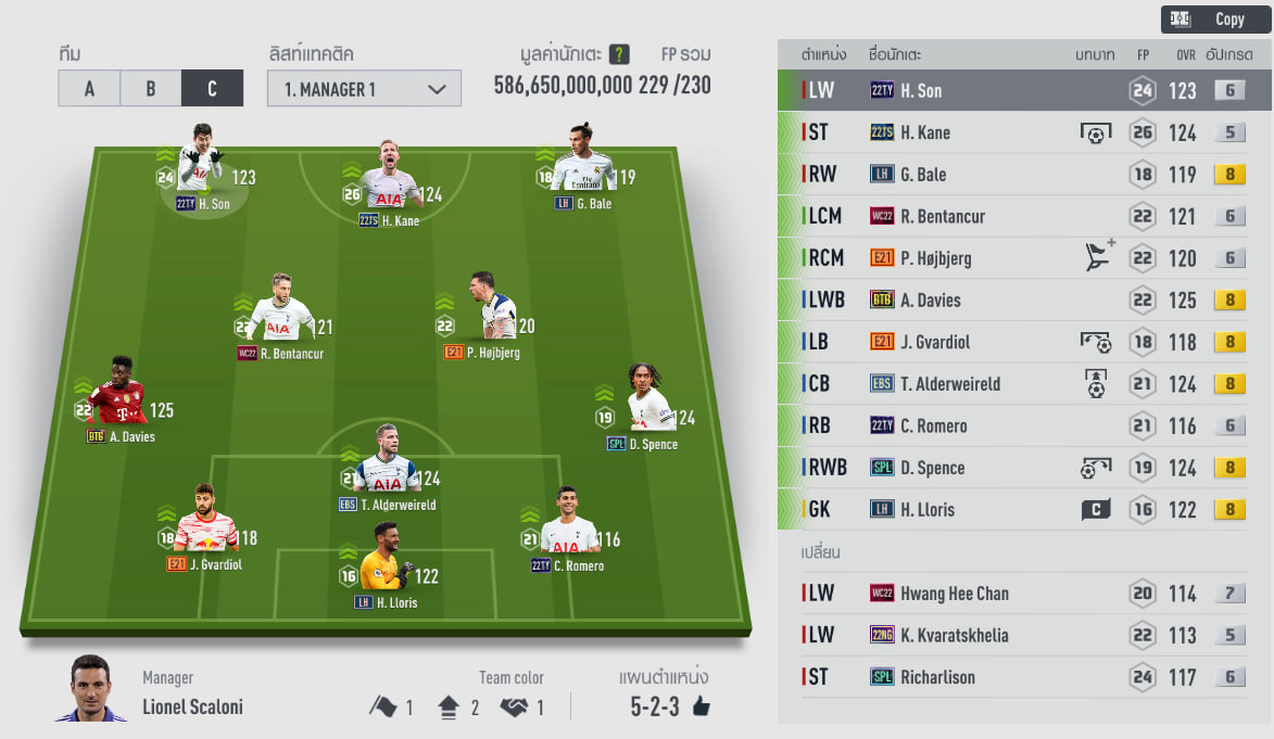 Như trên hình các bạn có thể thấy là HLV sở hữu đội hình trên đã thay thế nhưng nhân tố A. Davies và Gvardiol E21 vào đội hình để đảm bảo được yếu tố cân bằng. Davies là một cầu thủ đá GLXH cực chất khi vừa phòng ngự tốt vừa tấn công hay, thậm chí còn thường xuyên nghi bàn.