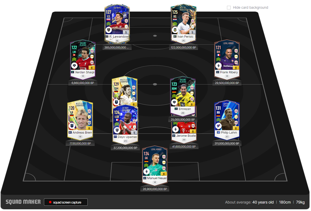 Dù ở bất cứ gameplay nào thì Bayern Munich đều là một trong những team dễ chơi dễ trúng thưởng nhất, họ có một dàn cầu thủ phù hợp và luôn nằm trong các top đầu của game. Tuy nhiên không thể phủ nhận một điều là team Bayern Munich đang dần bị một màu khi vị trí tiền đạo gần như không lệch đi đâu khỏi cái tên Lewandowski. Trong khi đó thì tiền đạo người Ba Lan càng ngày có phần hụt hơi cứ sau mỗi lần update do chỉ số tốc độ của Lewandowski bị chững lại so với mặt bằng chung.