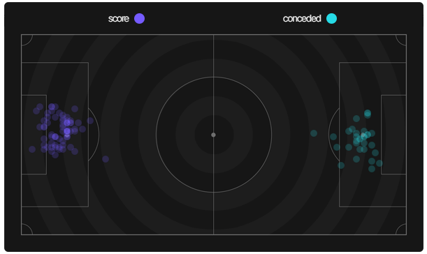 ✔ Cự ly ghi bàn trung bình : 12,4m