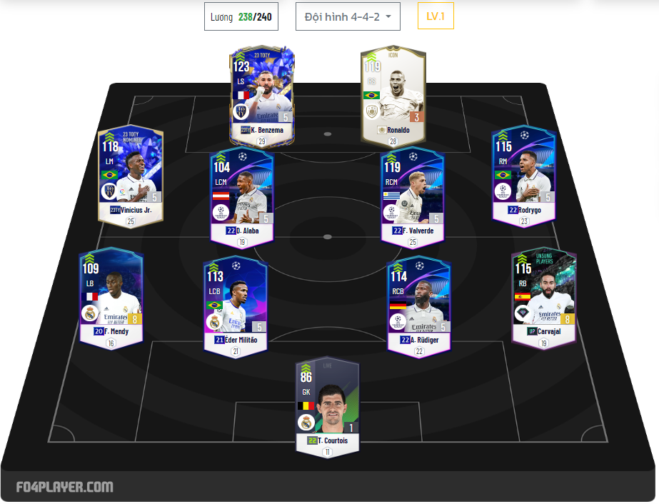 Real vẫn là một thế lực với gameplay 9.0 khi họ có được hàng loạt dàn cầu thủ có thể "phù hợp" với mọi lối chơi, đặc biệt là hàng thủ. Với việc 4222 đang trở thành trend trong gameplay 9.0 các HLV đang dần tập luyện sơ đồ ngày càng nhiều hơn. Tuy nhiên có một điểm khá hay là các trung vệ giờ đây phòng thủ đã khôn hơn thì liệu rằng chúng ta có thể mạo hiểm hơn một chút là dâng 2 cầu thủ CDM lên đá CM để chuyển từ 4222 thành 442 truyền thống từng thống trị bóng đá trong một kỷ nguyên dài hay không ? Dưới đây là một ví dụ với HLV Hang Seung-Yeo của Hàn Quốc.