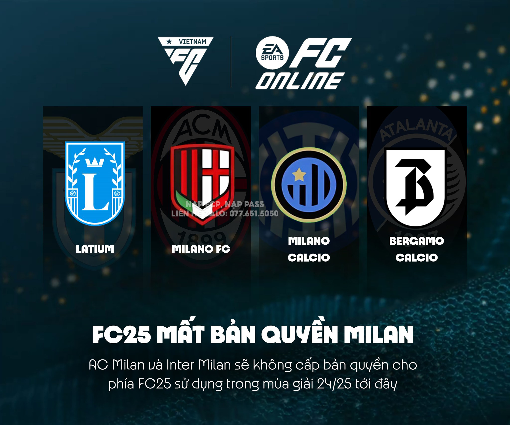 Như vậy, với việc FC 25 không còn bản quyền hình ảnh của AC Milan và Inter Milan, FC Online thời gian tới cũng sẽ không còn 2 CLB thành Milan kể trên và thay vào đó là logo cùng tên mới sẽ được thêm vào.
