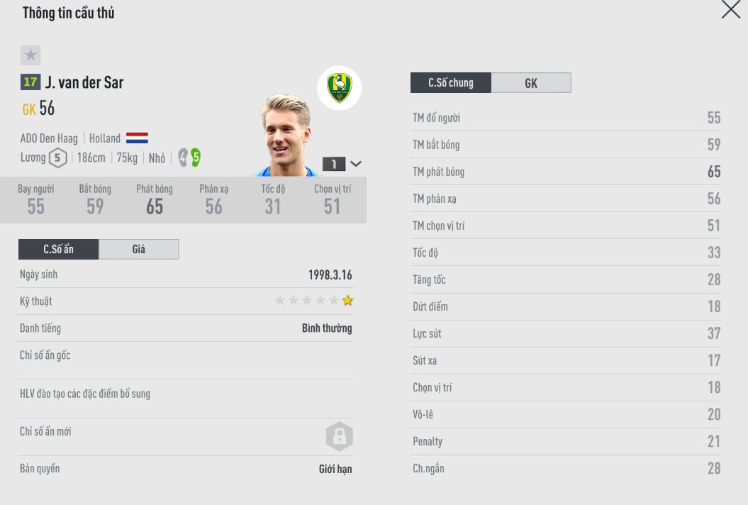 Con trai của huyền thoại Van Der Sar hiện đang chơi ở vị trí GK cho câu lạc bộ ADO Den Haag trong Holland Eredivisie . Năm nay 21 tuổi, nhưng có vẻ chiều cao của anh không được như ông bố vĩ đại của mình. Thủ môn là vị trí tương đối muộn phát triển trong bóng đá. Hiện Joe sẽ có nhiều cơ hội để tiến bước theo cha anh. Chính bản thân Van Der Sar thành danh cũng tương đối muộn.
