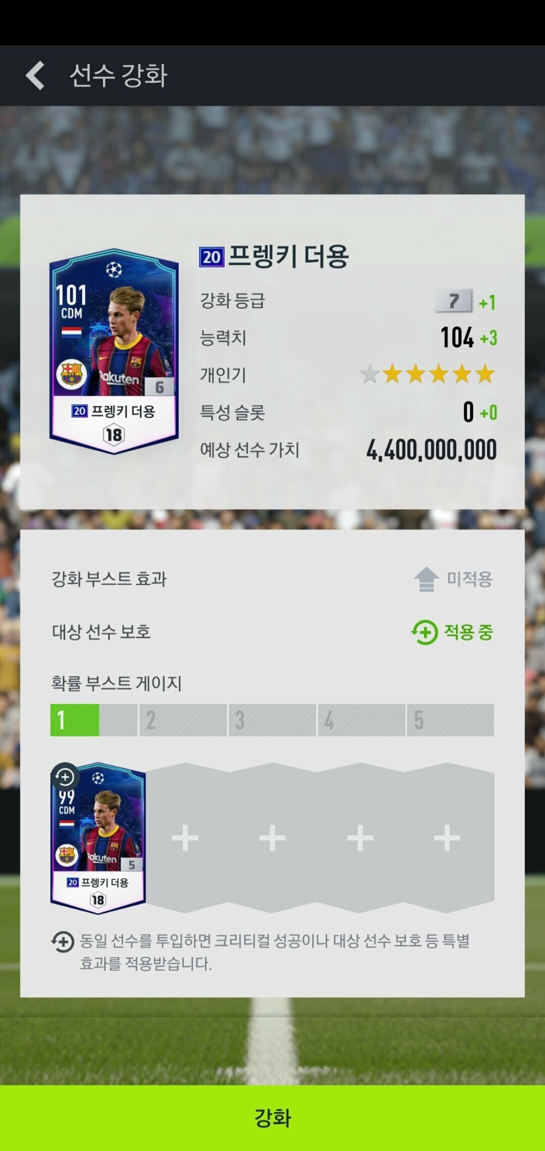 ✔ Điều kiện cần : khi bạn sử dụng nguyên liệu thẻ chính là cầu thủ nâng cấp.
