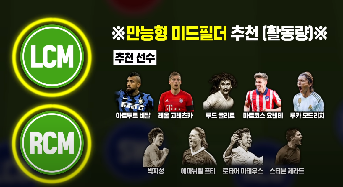 Với 5-2-3 thì vị trí hai tiền vệ cần có sự cơ động lên công về thủ, vì vậy bạn nên ưu tiến những cái tên có nền tảng thể lực cao. Cùng với đó là tốc độ tốt, khả năng áp sát nhanh. Vidal và Matthaus tuy nhỏ con nhưng lại đáp ứng được các yêu cầu trên với vai trò tiền vệ box to box. Chính vì thế mà chúng ta không thấy cái tên Ballack xuất hiện ở đây
