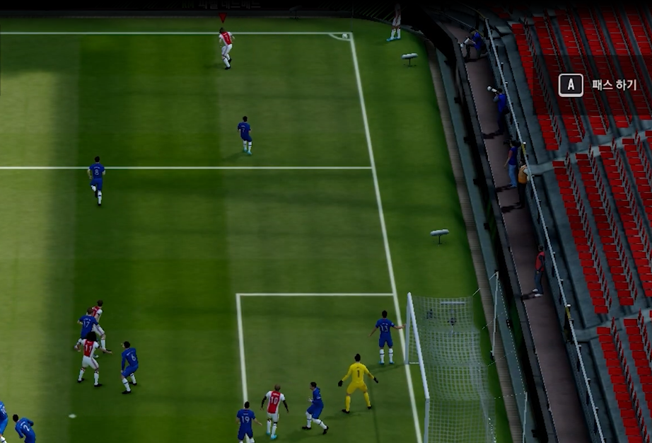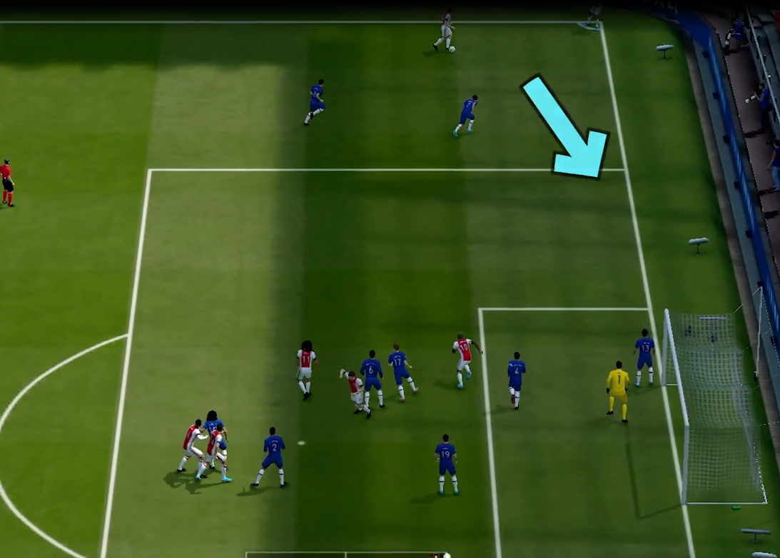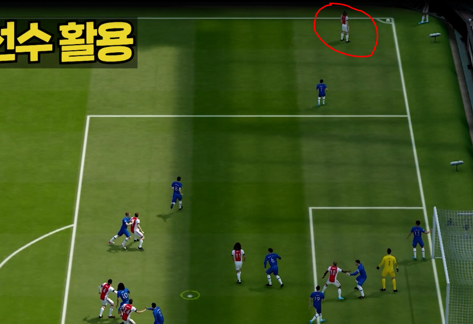 Bước 3 : kéo cầu thủ hỗ trợ chạy lên trên một chút thường là ngang vạch 5m50, thực hiện pha chuyền bóng nhẹ cho cầu thủ hỗ trợ