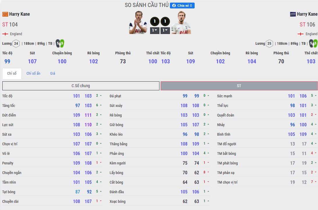 Hai mùa giải của Harry tuy có sự chênh lệch về chỉ số, tuy nhiên mùa giải E21 có giá thành rẻ hơn và dễ dàng sở hữu cầu thủ + 5 hơn. Vậy liệu E21 có thua thiệt quá nhiều so với 22TY hay không ? mời các bạn đến với những so sánh sau đây