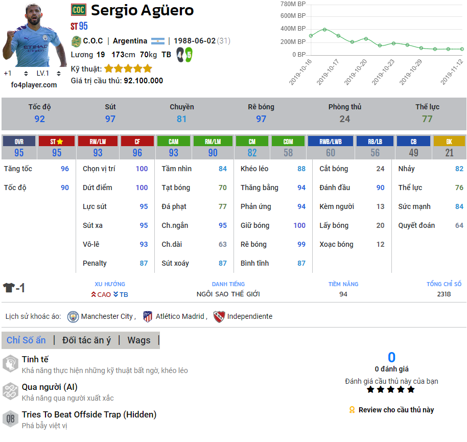 Hôm nay hãy cùng FO4VN.COM tìm hiểu về Aguero mùa giải COC xem anh thể hiện trong game ra sao nhé.