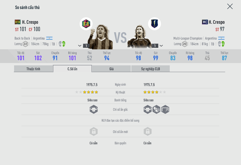 Kỹ năng ẩn của cầu thủ là một trong những tiêu chí quan trọng để người chơi chọn lựa và bổ trợ trong thi đấu. Tuy nhiên liệu việc thiếu đi những chỉ số ẩn này có làm cầu thủ yếu đi hay không? mời các bạn đến với bài so sánh