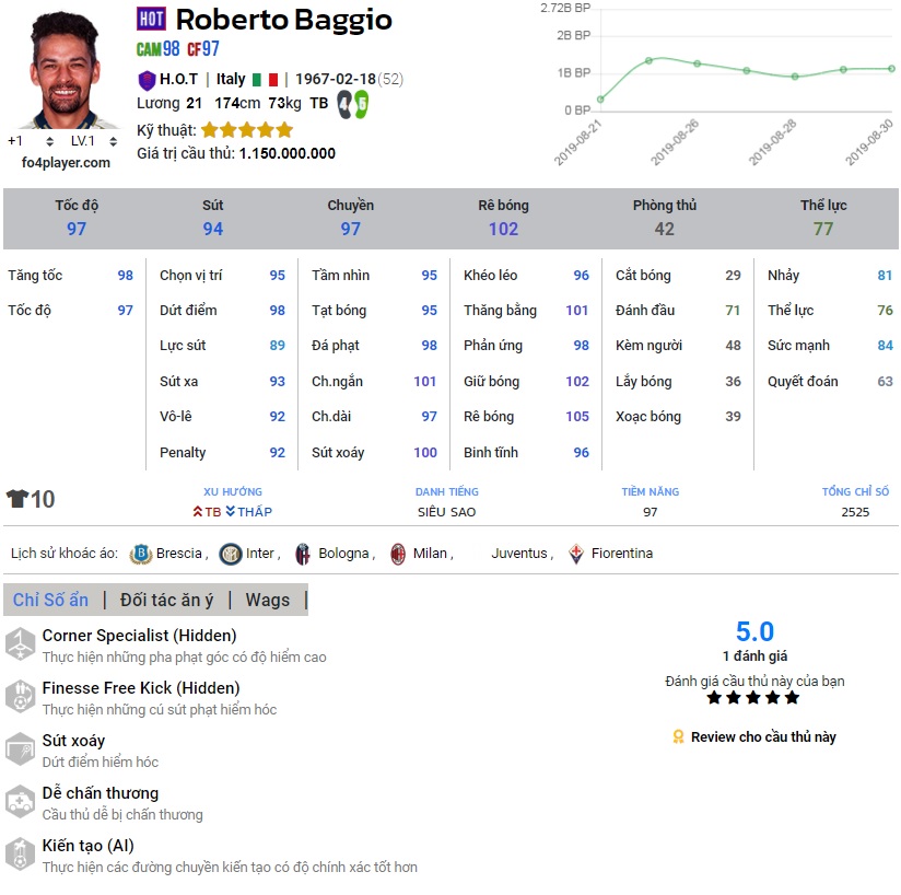 Chỉ số của Baggio | Nguồn : Chấm điểm : 9.0/10