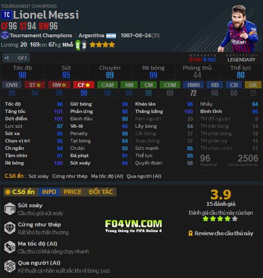 Lionel Messi - Đánh giá trong game