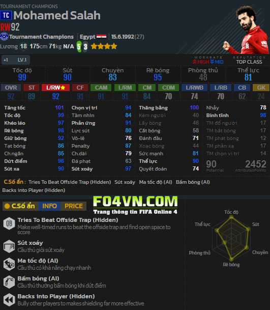 Mùa giải TC mô tả quãng thời gian đỉnh cao anh thi đấu cho Liverpool và đưa Liverpool vào tới trận chung kết C1. Vậy Salah TC có những điểm nổi bật nào? Hãy cùng FO4VN.COM tìm hiểu ở bài viết dưới đây.