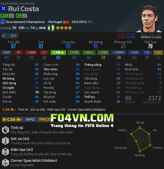 Rui Costa - Đánh giá trong game
