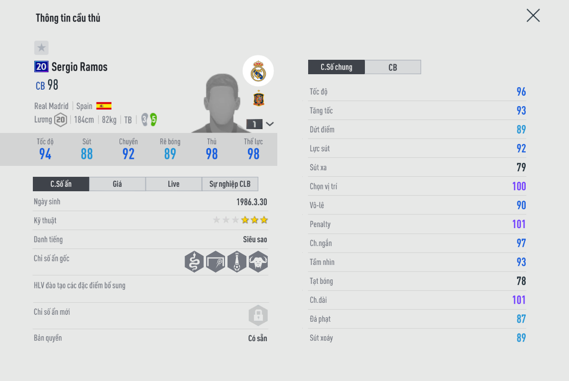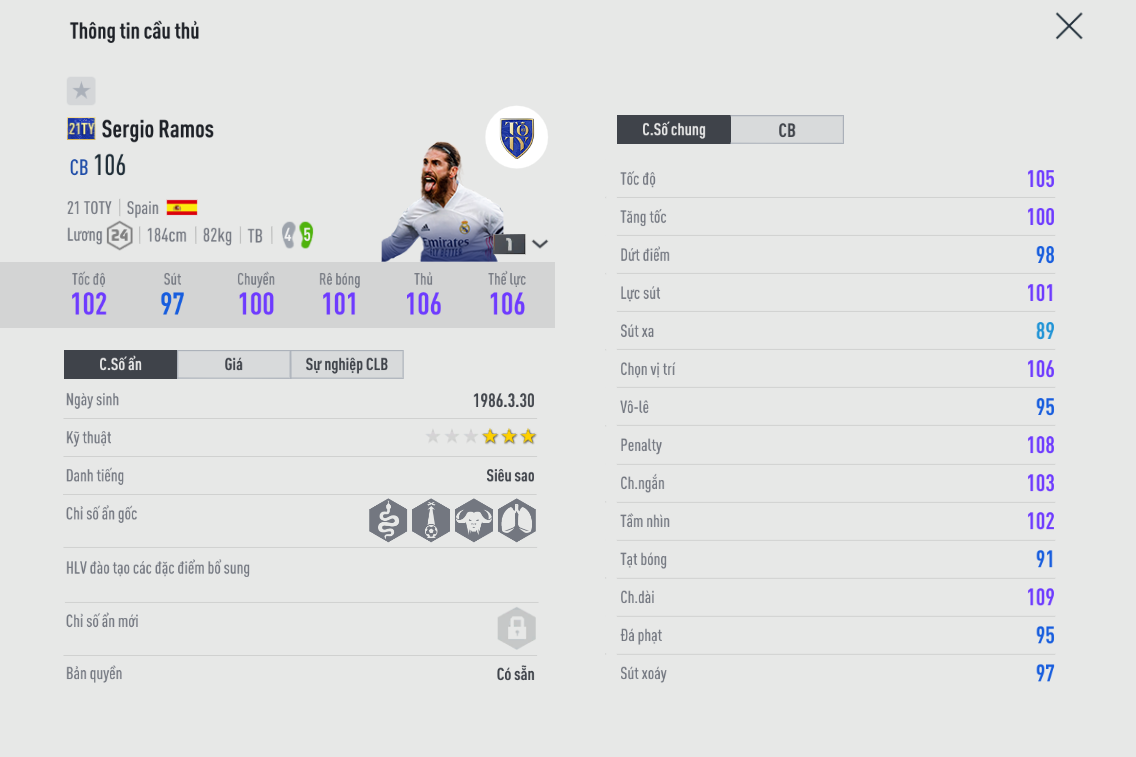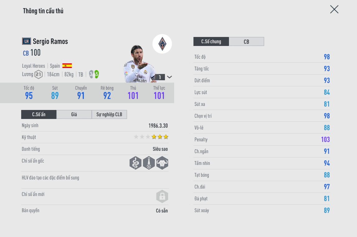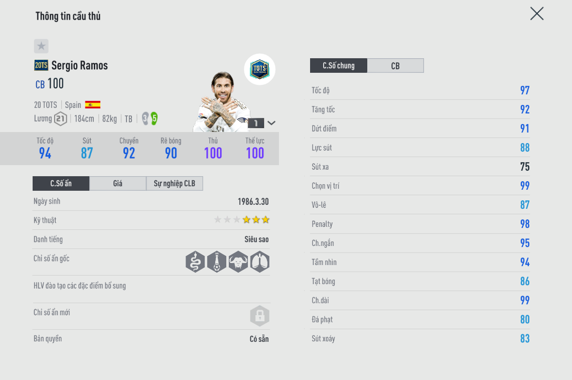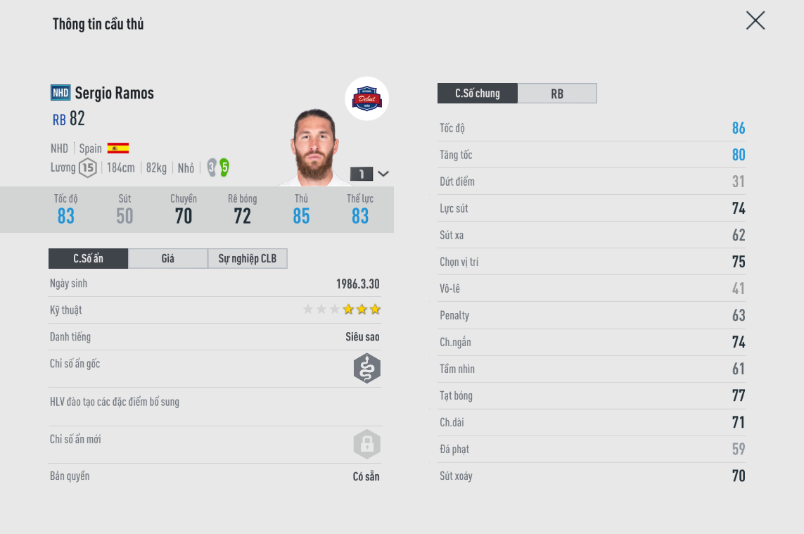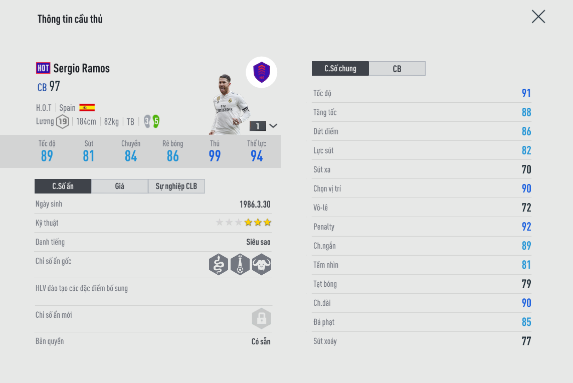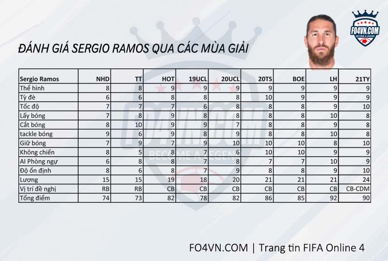 Siêu trung vệ của bóng đá đương đại Sergio Ramos là một cái tên mà khi nhắc tới bạn sẽ nghĩ ngay đến một cầu thủ chơi ở vị trí phòng ngự cực rát, có tốc độ và khả năng ghi bàn không khác gì một tiền đạo. Thế nhưng nhìn vào bảng các mùa giải của Ramos trong game, không khiến nhiều người hoa mắt trong mặt, vì bên cạnh Ronaldo và Messi. Thì Ramos cũng là cái tên góp mặt ở hầu hết các mùa giải trong game.