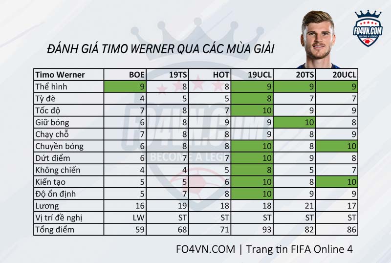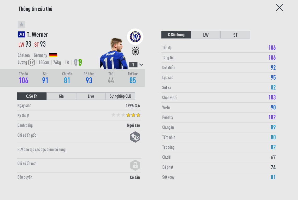 Một mức chỉ số mà bạn hoàn toàn có thể sở hữu thẻ + 8, nhưng còn tùy thuộc vào Chelsea có vô địch C1 hay không nữa. Hiện tại thì nó vẫn ở trong tầm tay. Dứt điểm phập phù, nổ súng không đều nhưng đóng góp lối chơi lại khá nhiều, khi chịu khó di chuyển để ban bật và làm bóng cho đồng đội