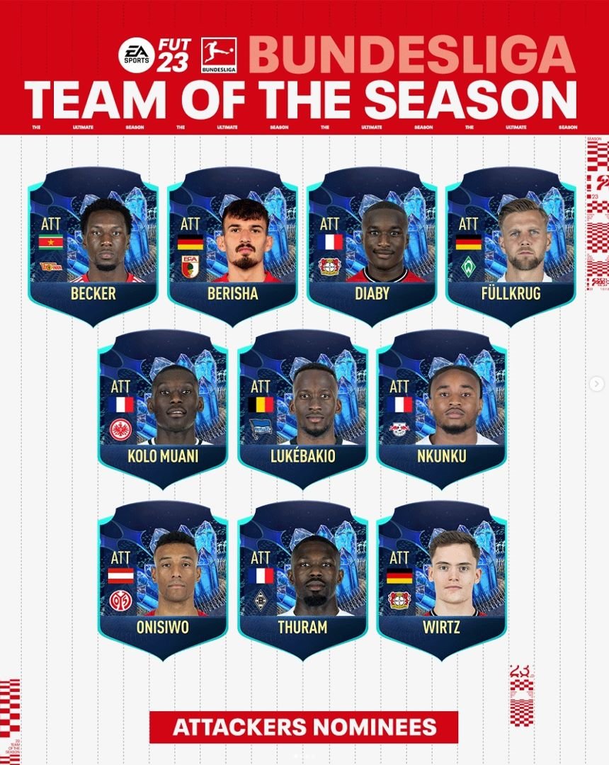 Hiện tại danh sách vote của 23TOTS của giải đấu Bundesliga đã được EA công bố từ ngày 25/4 và hoàn thành Vote. Dưới đây là các cầu thủ của từng vị trí tại mùa giải năm nay, sẽ có khá nhiều cái tên ấn tượng dành cho các HLV