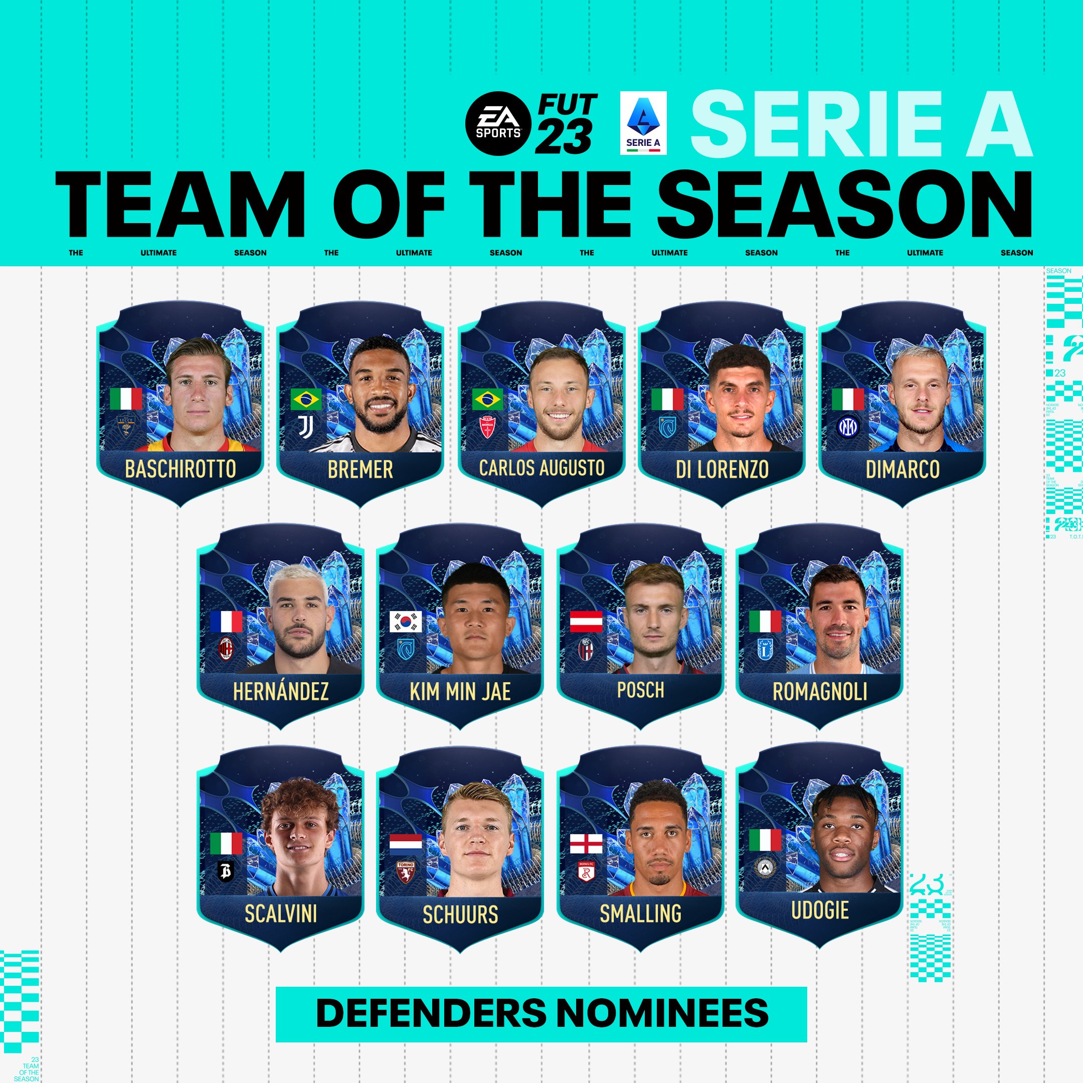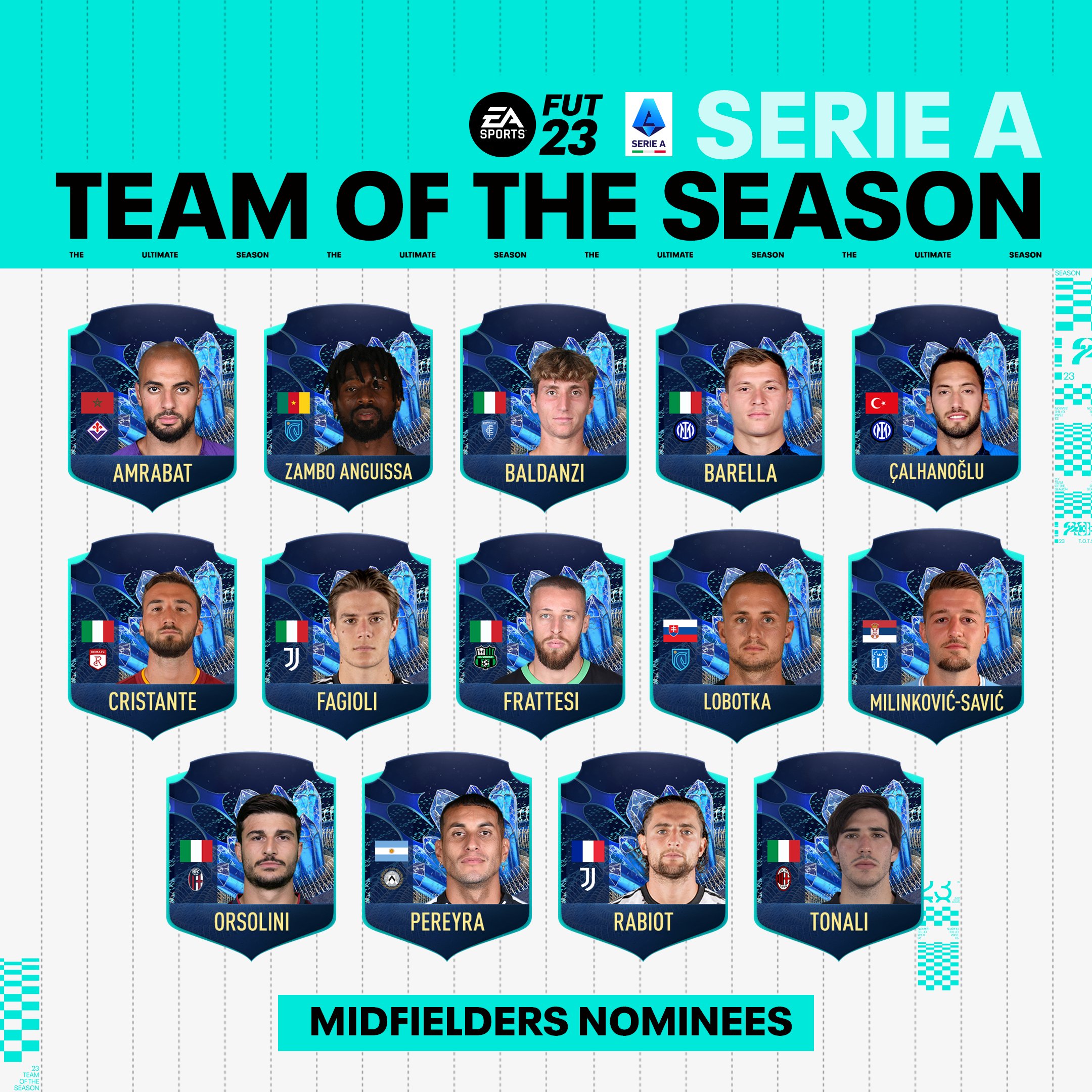 Năm nay Serie A chứng kiến sự trỗi dậy mạnh mẽ của Napoli với một phong độ ấn tượng. Điều đó cũng lý giải tại sao danh sách 23TOTS của giải đấu này với sự phủ sóng cực mạnh của những cầu thủ đến từ CLB này. Bên cạnh đó Ac Milan và Inter Milan, Juventus cũng đóng góp những cái tên đáng chú ý.
