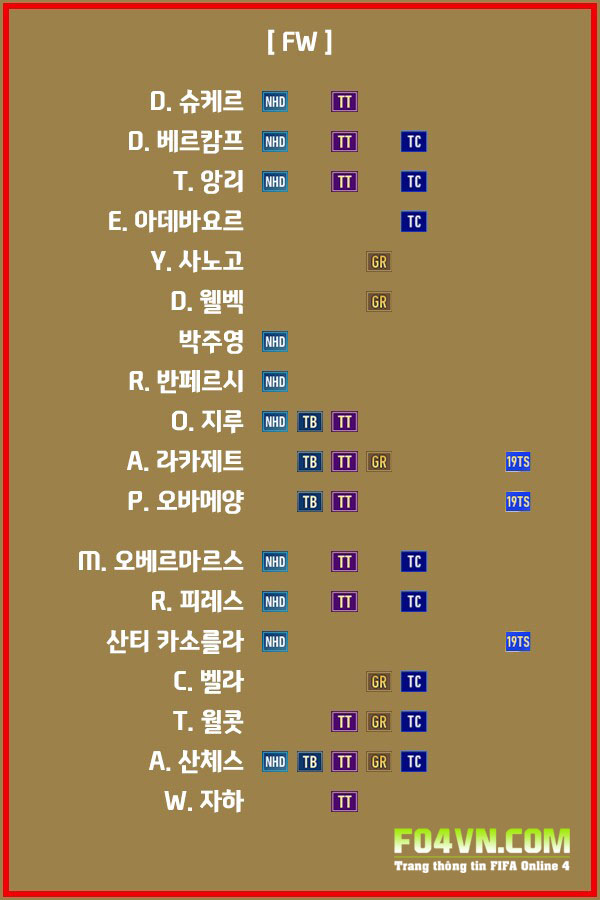 Hôm nay, hãy cùng FO4VN.COM tìm hiểu danh sách các cầu thủ đã và đang thi đấu cho CLB Arsenal trong FIFA Online 4 ở bài viết dưới đây.