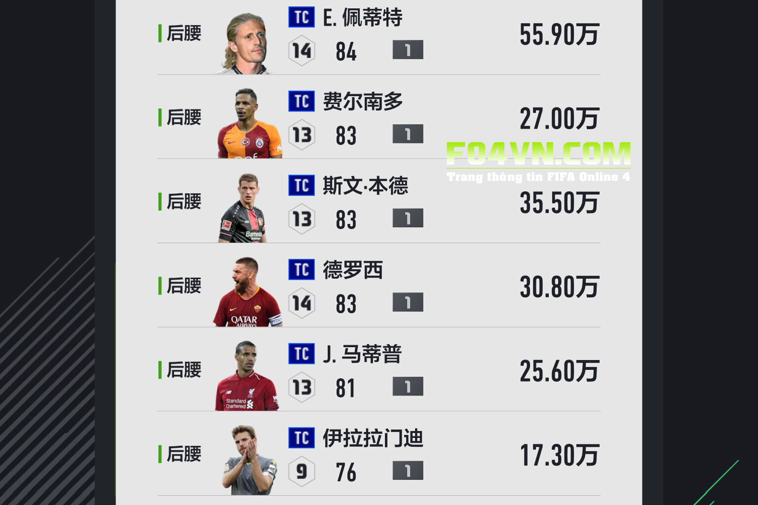 Ngoài ra, phía bên dưới cũng có khá nhiều cái tên nổi bật, hứa hẹn sẽ đem đến những làn gió mới cho vị trí CDM trong đội hình của bạn.