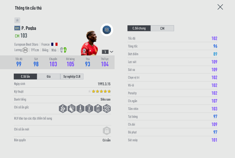 Đứng đầu trong danh sách là tiền vệ của MU. Đây là mùa giải mà Pogba được buff cực mạnh khả năng tấn công. Và không khó hiểu khi anh được lựa chọn nhiều nhất. Mặc dù vậy giá trị thẻ + 1 của Pogab chỉ dừng lại ỏ con số 700m BP, thua kém rất nhiều với những cái tên đình đám như Ballack hay Gullit.