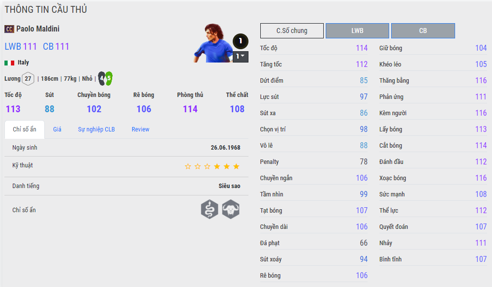 Việc nâng cấp mùa giải ICON lên 2 chỉ số ovr, đã tạo cho Nexon cơ hội để có thể ra mắt thêm mùa giải mới có khoảng cách ovr được nới rộng hơn ít nhất cho tới cuối năm nay. Nếu bạn không thể sở hữu được Maldini ICON thì tôi khuyên bạn là mùa giải Century Club này sẽ khiến bạn vô cùng hài lòng với Maldini. Mọi thứ tốt nhất của Maldini trong FC Online đều được Nexon đem vào trong mùa giải mới này, thứ thiếu duy nhất có lẽ là skill ẩn siêu cản phá mà thôi.