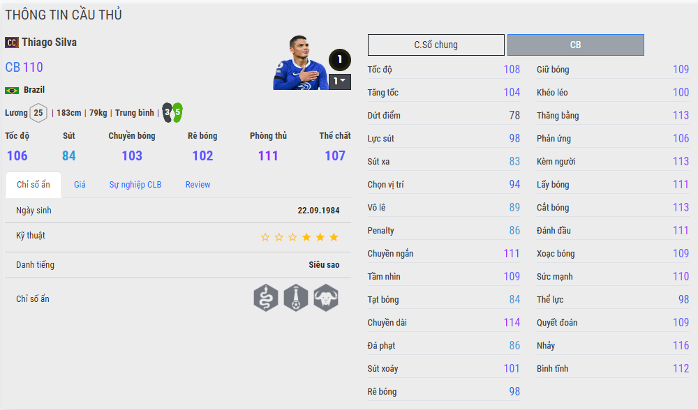 Trong game có rất nhiều mùa giải của Silva mà bạn có thể sử dụng, nhưng qua thời gian thì tốc độ của các mùa đó đã không thể đáp ứng được nhịp độ của game. Mùa CC sẽ là mùa giải cho phép Nexon xây dựng một Thiago Silva phù hợp hơn với gameplay hiện tại.