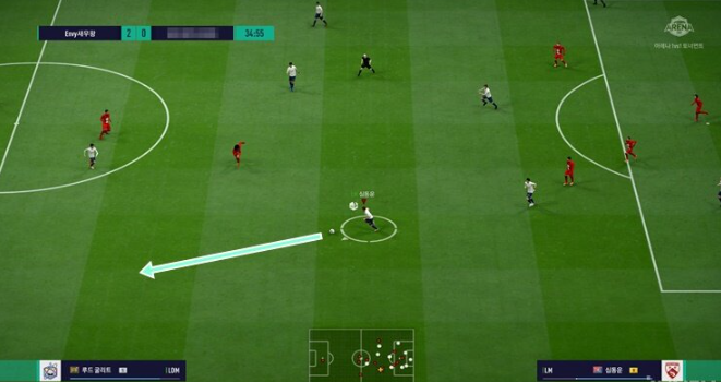 Như trên hình bạn có thể nhạn ra Son Heung Min đã đối hướng bóng ngay khi đỡ bóng và đồng thời tốc độ của anh chàng được đẩy lên khá cao, trong khi đó thì hậu vệ lại có xu hướng lao lên khi mà đối thủ chưa kịp đổi con trỏ để điều khiển.
