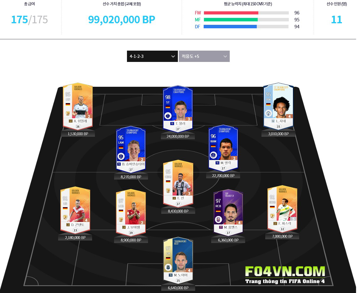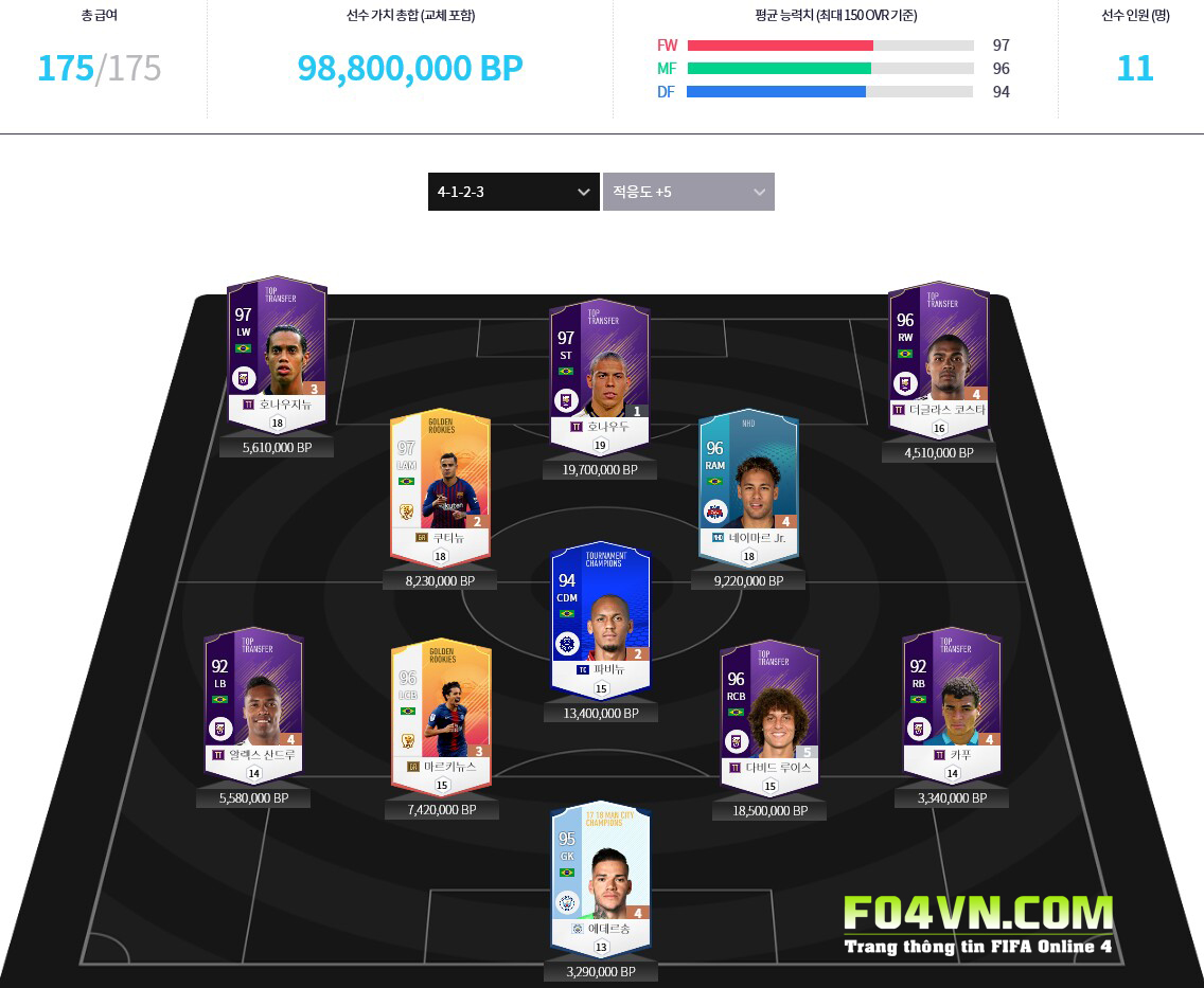 Đội hình các đội tuyển Quốc Gia trong FIFA Online 4