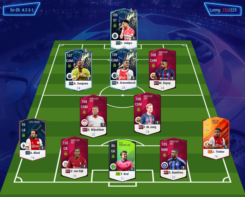 Trong game thì đội hình của team Hà lan cũng rất chất lượng với những cái tên có thể được xếp hàng tốt của từng tuyến. Họ có một cặp CB cứng, cao to và tốc độ cực tốt, hàng công là 4 cái tên có thừa tốc độ và kỹ thuật để có thể xuyên thủng mọi hàng thủ. Có lẽ điểm yếu nhất của đội hình này là... người chơi không thể vác Gullit, Rijkaard vào sân mà thôi.