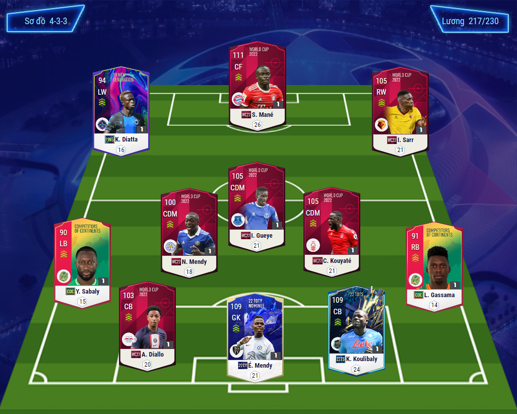 Trong game thì với đội hình như trên thì đội tuyển Senegal rõ ràng có thể chơi pressing rất rát và đá phản công cực hiệu quả khi luôn sở hữu những máy chạy giàu thể lực trong đội hình. Tất nhiên với hai cánh có ovr khá thấp sẽ là một trở ngại lớn cho những ai chơi đội tuyển này