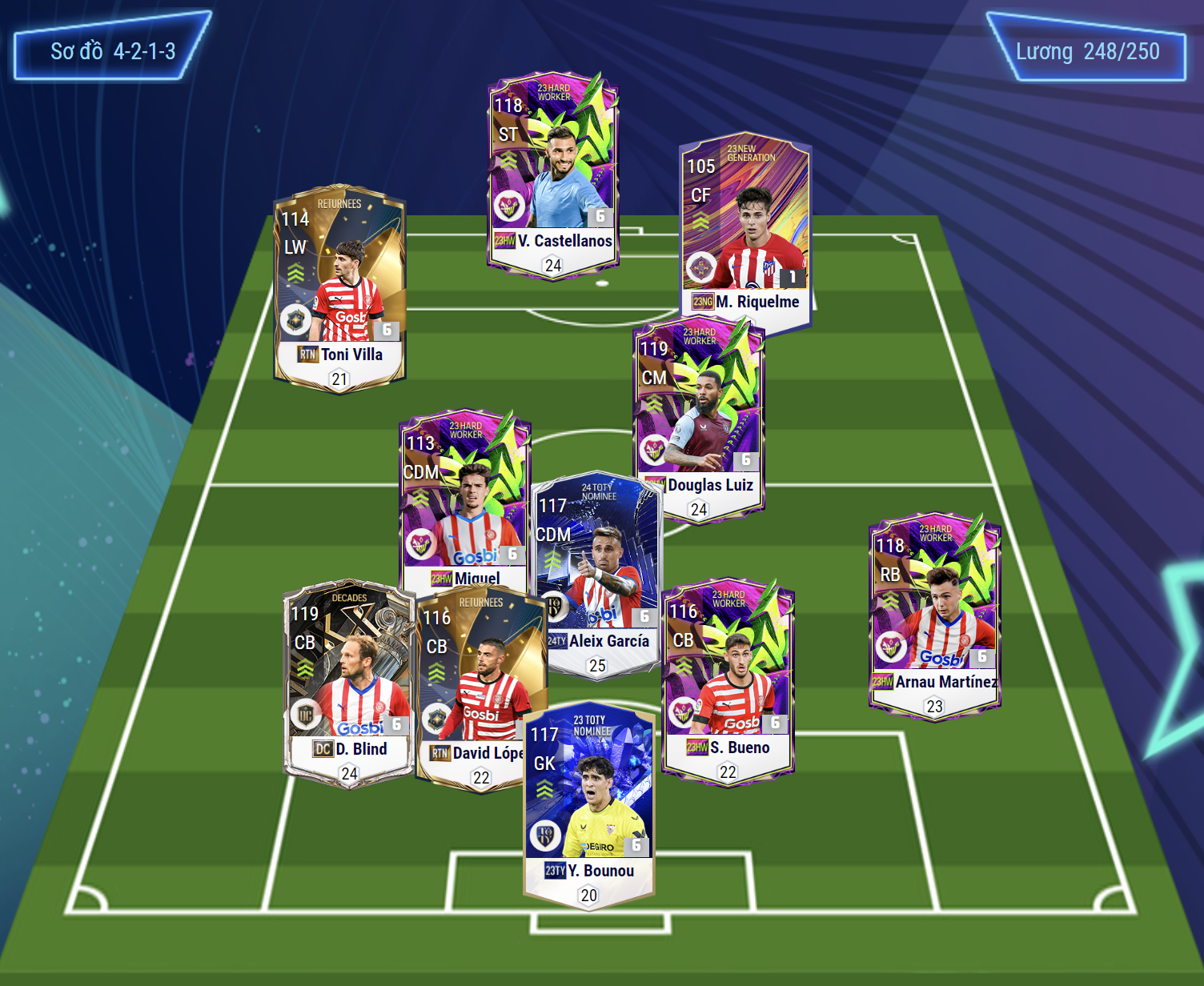 Dù được biến tấu ở rất nhiều vị trí khác nhau nhưng đến cuối Girona vẫn cho ra đội hình 4-2-1-3 ở một dạng biến thể riêng biệt. Vị trí tiền đạo cắm sẽ thi đấu bên cạnh 1 hộ công ngay phía dưới tạo nên thế trận đập nhả ấn tượng. Vị trí hành lang cánh sẽ là LW thường xuyên tham gia tấn công cùng các cầu thủ.