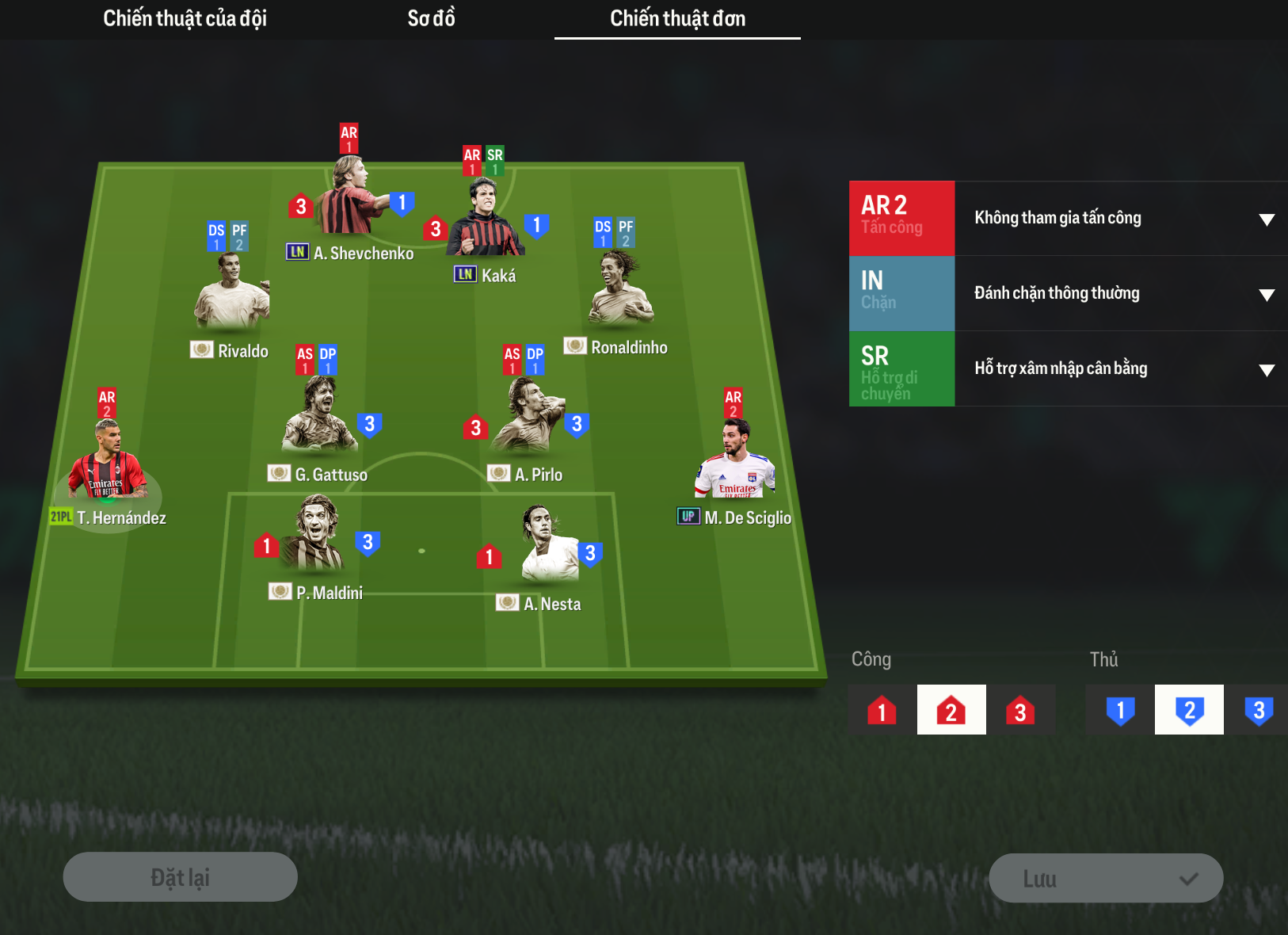 Vì là một đội hình kết hợp nên chiến thuật lối chơi đều để ở trạng thái cân bằng để các HLV có thể dễ dàng chủ động triển khai bóng một cách bình tĩnh, các cầu thủ phòng ngự sẽ lùi hơn và chủ động trong các tình huống phòng ngự hơn rất nhiều.