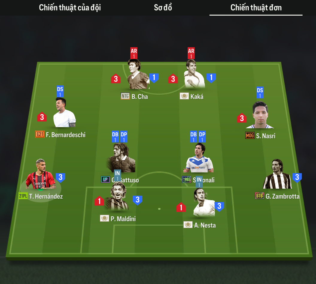 Chiến thuật đơn được chỉnh sửa rất ít, một phần là bởi cá nhân những cầu thủ của CLB Sampdoria đã có những điểm mạnh đặc trưng cho từng vị trí của họ, chính vì vậy không cần cài đặt quá nhiều để tránh việc di chuyển bị rối trong trận.