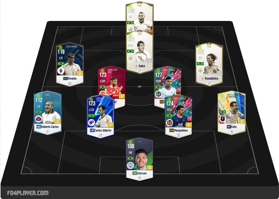 Đây là một ví dụ về team color Brazil được HLV người Hàn sử dụng để leo rank, như các bạn đã thấy với một đội hình gần như thiên hoàn toàn vào các cầu thủ tấn công, trong khi hàng thủ mang tính chất "gánh lương" rất nhiều. Dù vậy khó có thể coi thường bộ tứ về này được, khi họ đều sở hữu một tốc độ vô cùng tốt. Hai bên cánh đều là hai cầu thủ công thủ toàn diện. Thời kỳ đầu game, thậm chí Carlos NHD còn được đôn lên đá tiền đạo cánh vì thể hình thấp đậm, tốc độ và xâm nhập rất tốt.