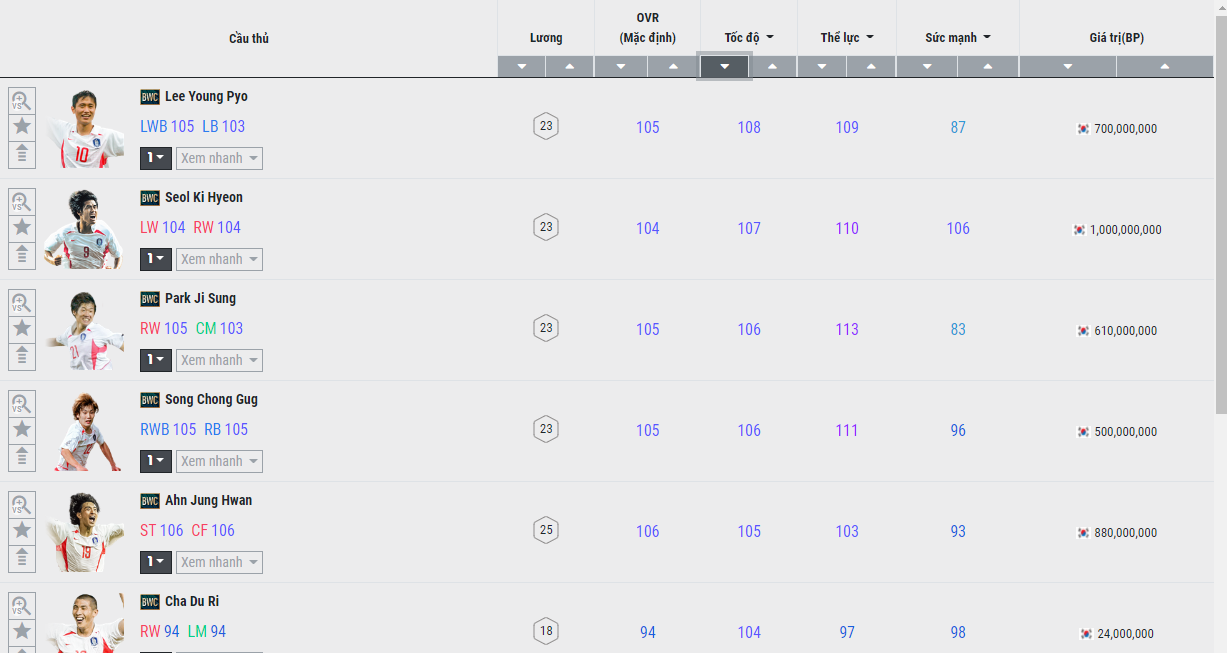 Mùa giải BWC, Nexon còn cho rất nhiều cầu thủ Hàn của năm 2002 hai chân 5/5 và tốc độ chay cực khỏe cho dù ovr chỉ tầm 104-106, nhưng hãy thử tưởng tượng khi nâng cấp lên +5 thì sẽ như thế nào.