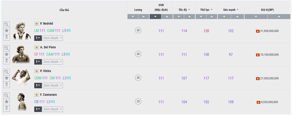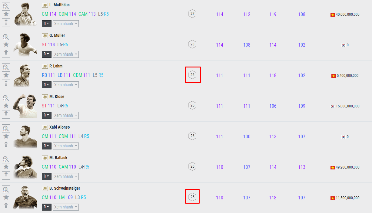 Chúng ta sẽ đi lần lượt qua từng cầu thủ.